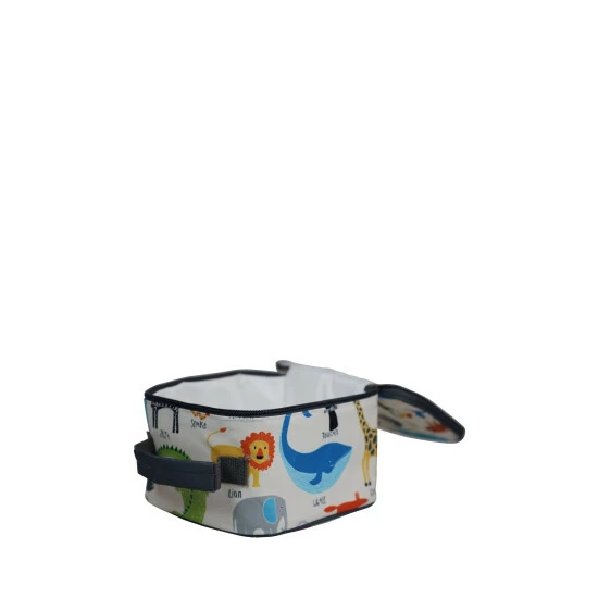 Send your children off to school with the fun and trendy Mr Fox wipe clean lunch bag. A light blue bag with orange fox, this lunch bag is insulated and made from polyester/ Measuring 20 x 20 x 12cm in size, this lunch bag comes with a zip fastening, carry handle and a name badge.