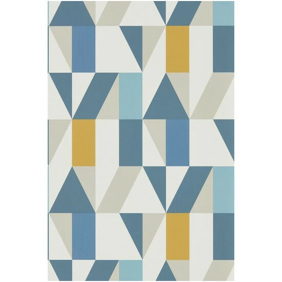 This angular asymmetrical wallpaper design features interlocking shapes to create a contemporary patchwork effect in strong colourways. Take a look at the fabric of the same name. Length of Roll 10m. Pattern Repeat: 52cm. Paste the wall. Deliveries to UK Mainland only.