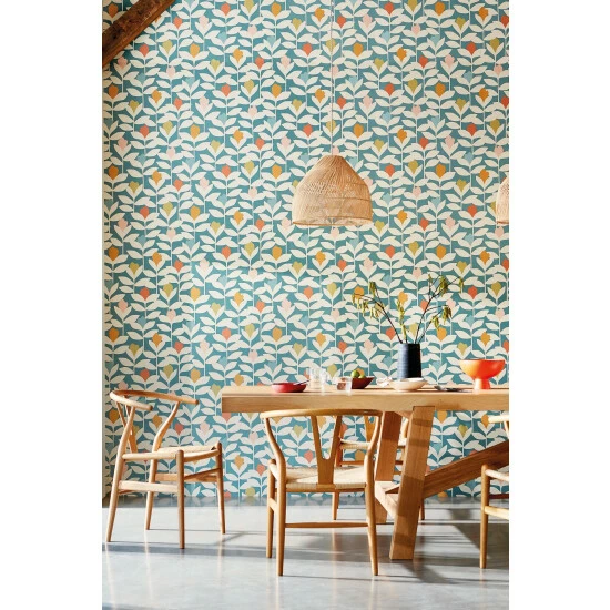 Esala Wallpapers – Confident pops of colour stand out amid layers of stylised stems on this classic Scion wallpaper. Length of Roll 10m. Pattern Repeat: 52cm. Paste the wall. Deliveries to UK Mainland only.