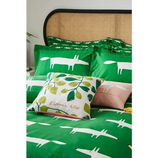 Accompanying Mr. Fox cushions come in mint leaf or milkshake for fun extra bedding plumpness and frivolity with tassels on the edges. For even more signature Scion style, add a contrasting cushion, from the Rosehip print in mint leaf green and zest.