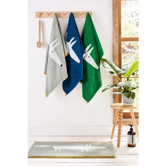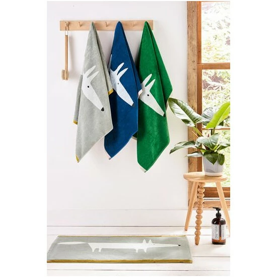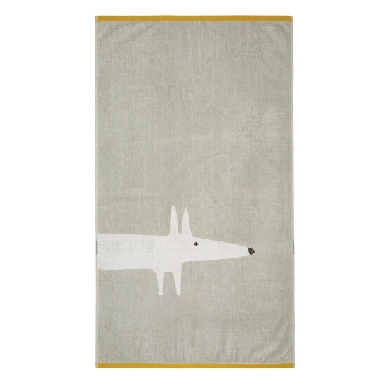 Emerging from the towel s edge, Mr Fox in a bold size, peeks into view on these soft 100% cotton velour towels. With his snout primed and ears pricked, Mr Fox brings a cool scandi edge to bathroom towels. Each towel is edged top and bottom in a contrasting pebble, milkshake or ochre colour.