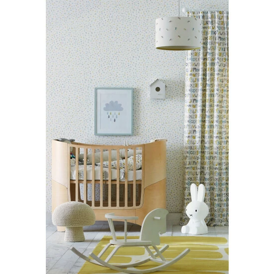 A charming handcrafted finger painted spot design wallpaper ideal for both boys and girls rooms and for use on all four walls. Deliveries to UK Mainland only. Length of Roll 10m. Pattern Repeat: 52cm. Paste the wall.