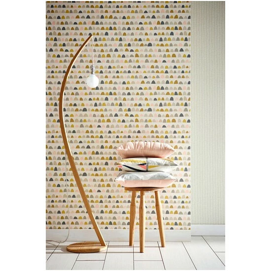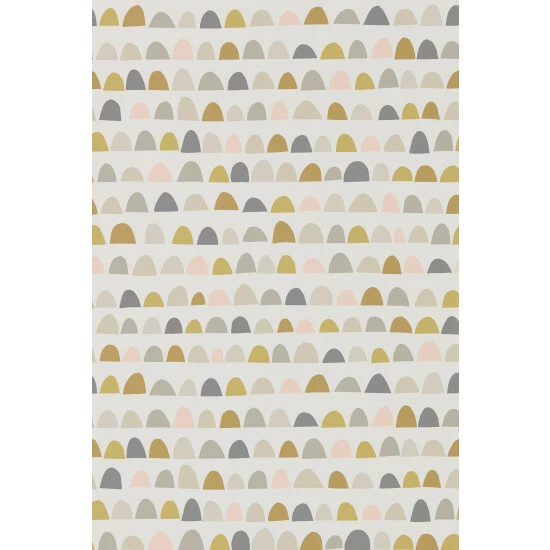 Repeating irregular half-moon shapes run horizontally across this wallpaper. Printed on non-woven paper in soft trend-led palettes. Ideal for bedrooms, ensuites and home offices – team with the fabric of the same name. Length of Roll 10m. Pattern Repeat: 52cm. Paste the wall. Deliveries to UK Mainland only.