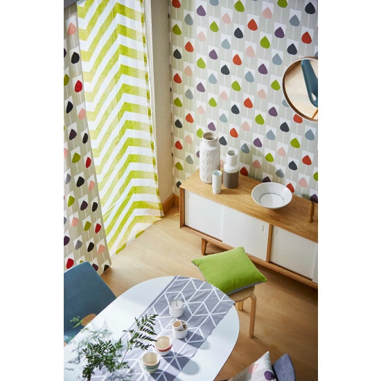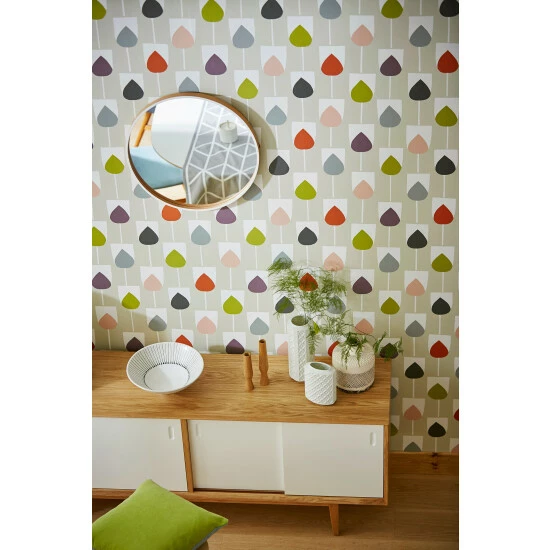 Stylised graphic tulips printed on a non-woven wallpaper is available in striking colourways with a fabric to match. Use this design to create a fresh and inviting scheme. Length of Roll 10m. Pattern Repeat: 64cm. Paste the wall. Deliveries to UK Mainland only.