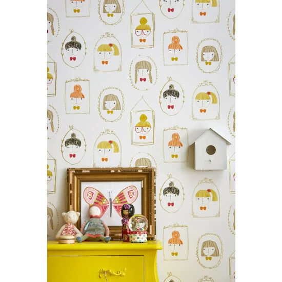 Including all the latest à la mode hairstyles the Hello Dolly wallpaper is perfect for any young fashionista’s dressing room. Team with the fabric of the same name. Deliveries to UK Mainland only. Length of Roll 10m. Pattern Repeat: 52cm. Paste the wall.